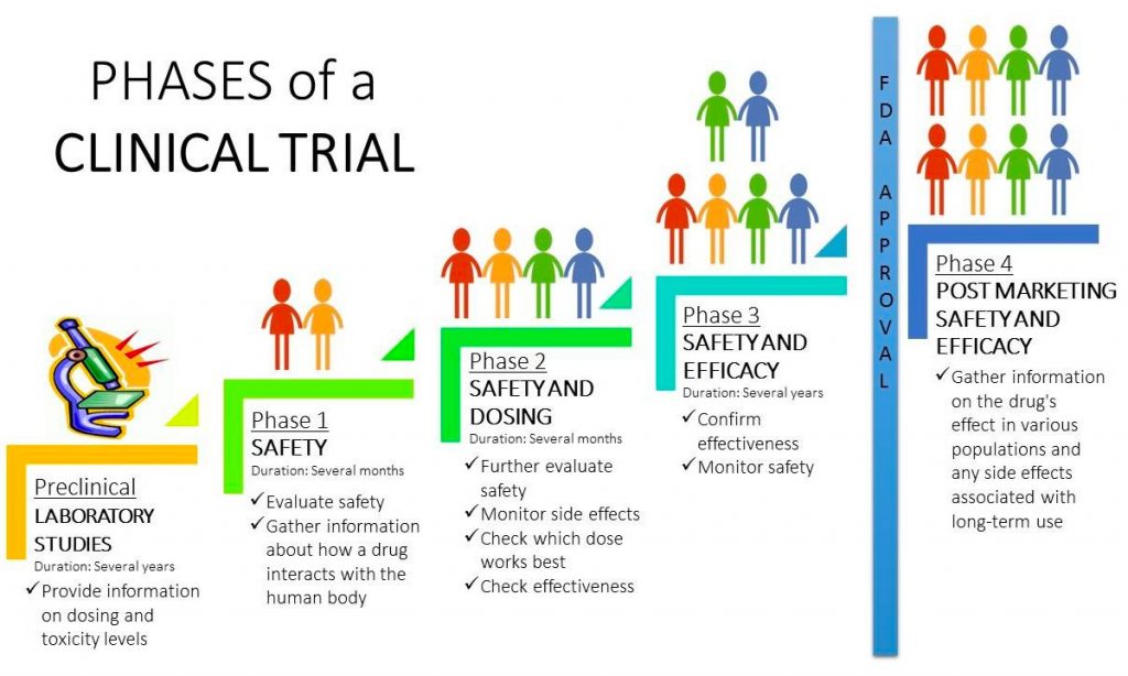 Após todos os parâmetros de acordo com a segurança e efetividade do fármaco proposto, pode-se seguir para fase clínica, a qual é subdividida em fases que estão descritas abaixo.
