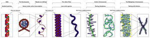 A organização da compactação do DNA é disposta em vários níveis, de forma gradativa ocorre a diminuição da acessibilidade do DNA. Esses níveis de compactação promovem a diminuição do comprimento linear do DNA. Os níveis de organização são: nucleossomo, cromatina e cromossomo.